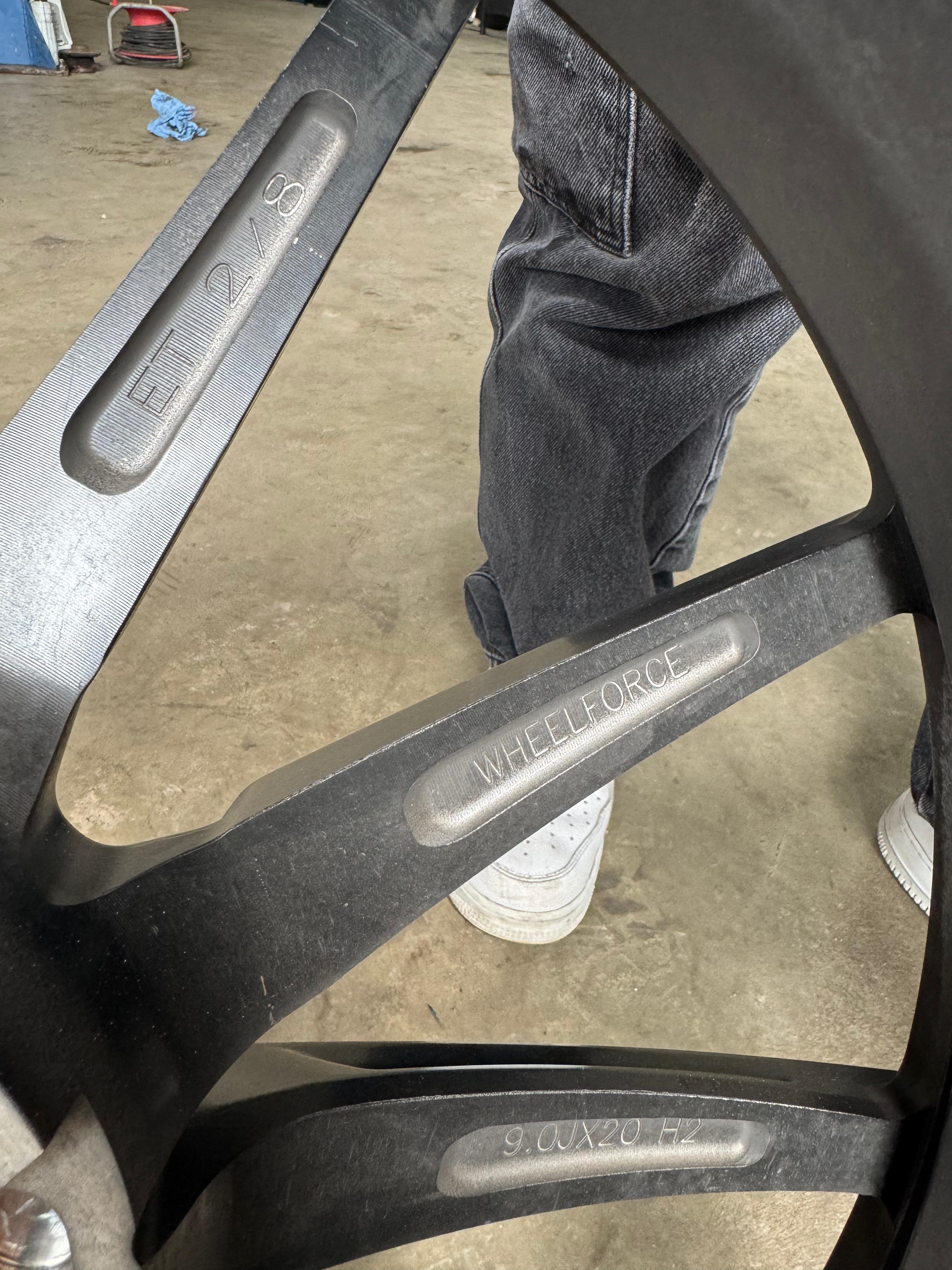 Eingeprägtes Branding: Jede originale Wheelforce-Felge besitzt eine gut sichtbare Gravur mit unserem Logo, Modellnamen und Seriennummer – direkt im Inneren der Felge.